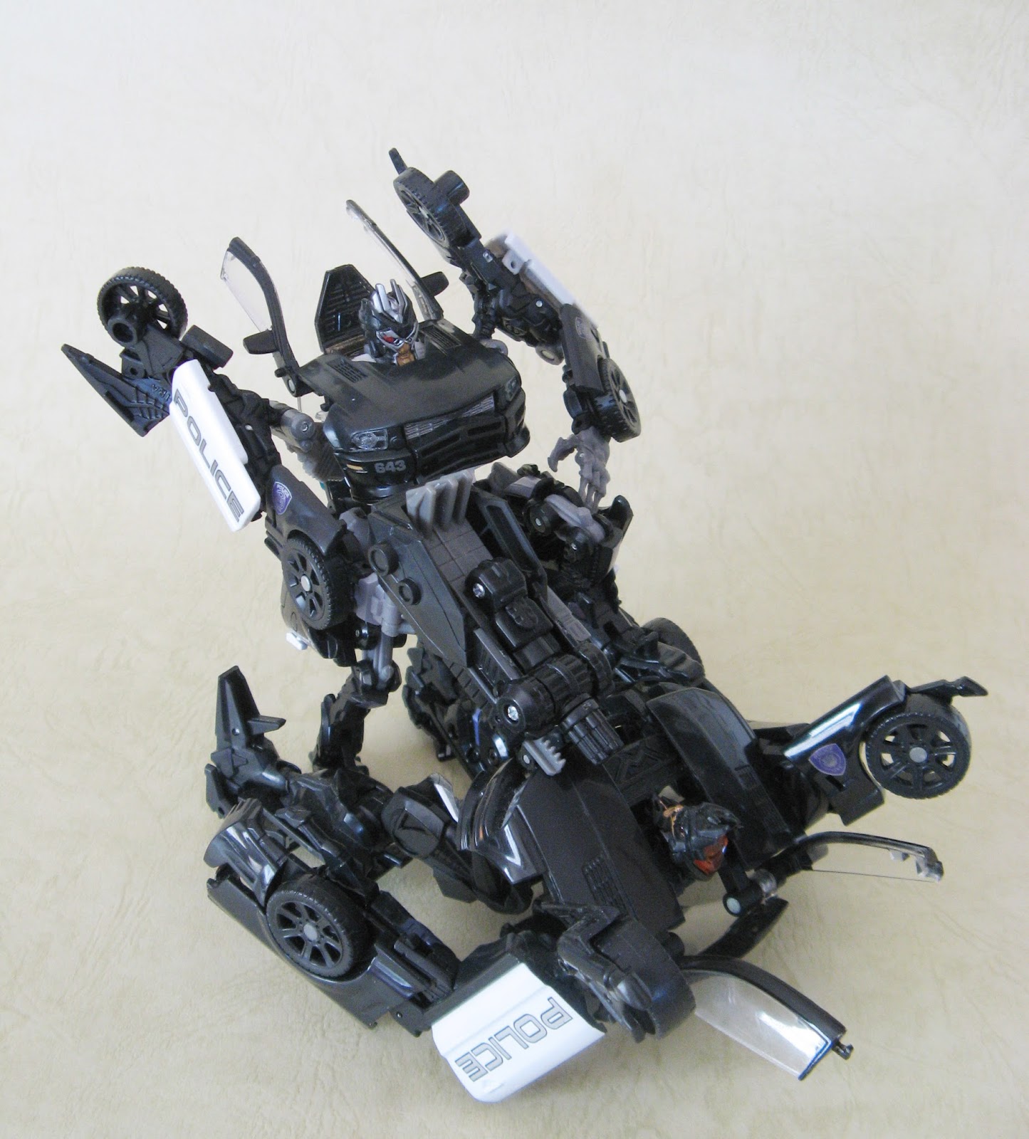 變形金剛真人電影第三集黑月降臨新版的路障Barricade。變形機構全新設計加上槍變鋼爪MechTech武器,附第一集的Barricade作比較,少了Frenzy是最大分別!